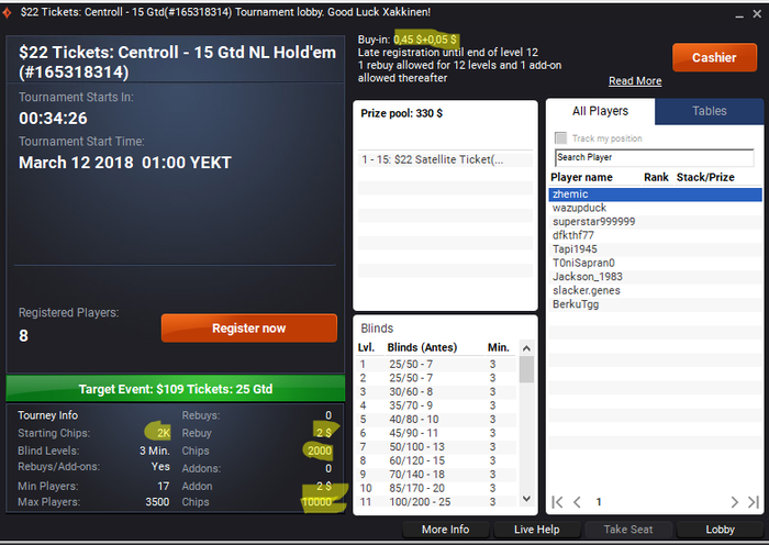 Бонусы нужно успеть отыграть до этой же даты. Неиспользованные билеты, турнирные доллары и очки программы лояльности будут автоматически конвертированы в кэш.