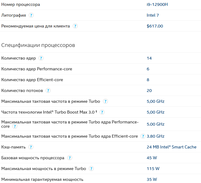 1. Проц Intel Core i9-12900HX vs i9-12900H у остальных трёх