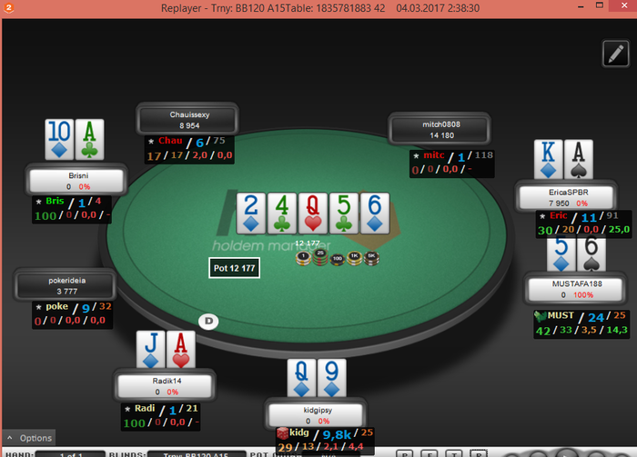 AVDEY83, есть 2 варианта: ты его ,примерно также ,переехал в одной из предыдущих раздач ,или ты очень грамотно уходил от всех уловок и тебе выстроили конкретный капкан(тебя просто не хотели видеть в этом турнире,предполагаю,что не так давно выиграл в нем приличную сумму). у каждого норм.игрока куча таких раздач.