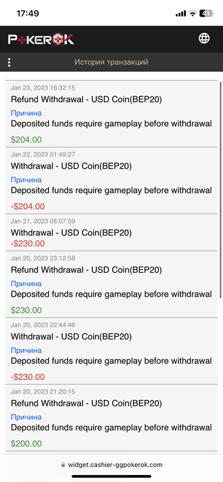 ПокерОК, Странная ситуация с выводом на USDC у меня происходит последние две недели