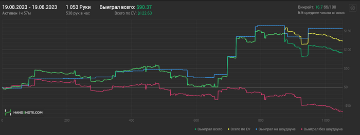 22/08/2023: 2.53ч, 1634 рук nl50 +$216.