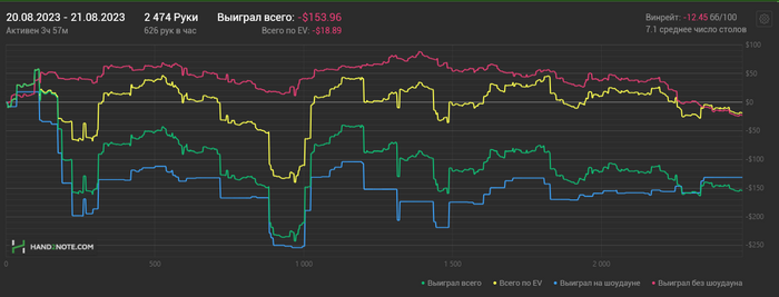 21/07/2023: 3.57ч, 2474 рук nl50 -$169.
