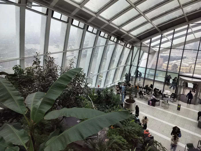 Как можно догадаться по названию, это “небесный” сад, а если быть более точным - подобие оранжереи на крыше здания. Расположен он гораздо ниже прошлых площадок, на 30 этаже. Однако это идет лишь в плюс, поскольку лондонский туман уже не помеха.