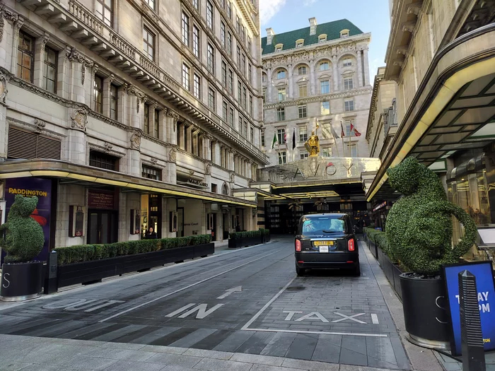 В Великобритании (а также многих ее бывших колониях) используется левостороннее движение. Но встречаются и редкие исключения, например в отеле Savoy в центре города. Для отеля сделали исключение аж в 1902 году и с тех пор заезд идет с правой стороны. Вероятно, так водителям было удобнее высаживать / подбирать пассажиров.