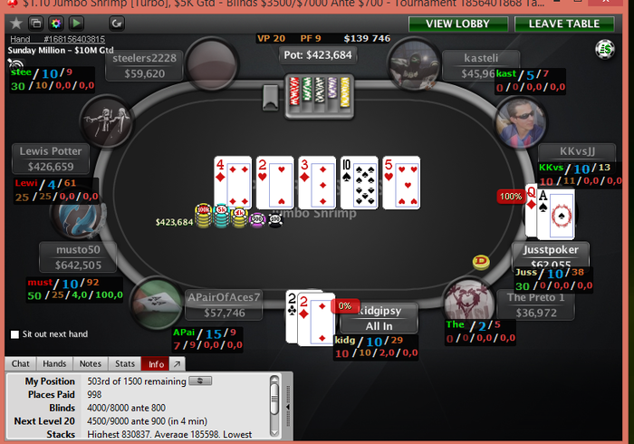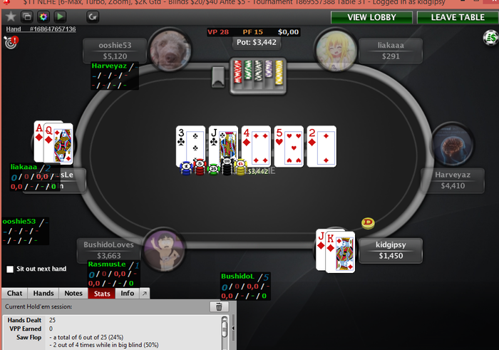 Kilo, Что тебе сказать то на счет этого,что бы я кого то переехал ривером или терном это на грани фантастики,Пукен старс включил опцию - "Дисперсия навсегда" так что таких скринов нету. Зато могу похвастаться успехами на условные деньги вот там настоящий Покер без дисперсии и вечных кулеров где играют в основном американцы и европейцы,гсч на реальные деньги очень сильно отличается от гсч на условные деньги.