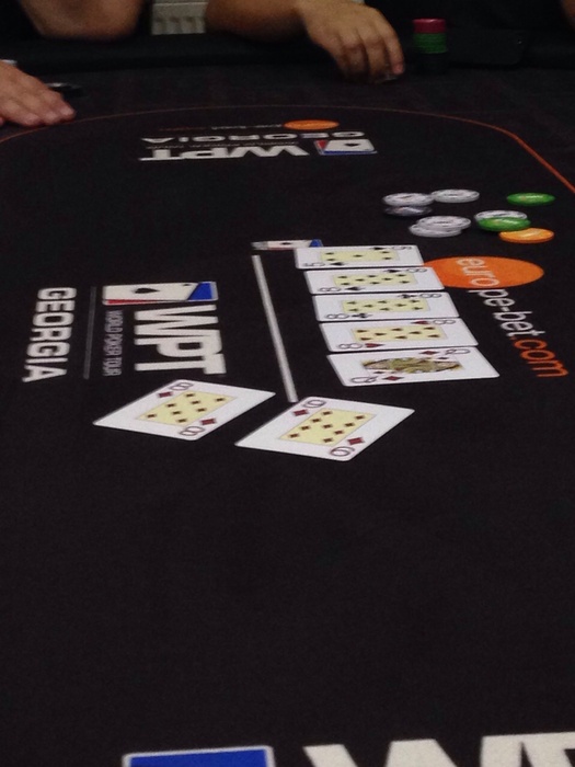 Спасибо за поздравления всей IPS Team. нашему директору Игорю который привез и болел за нас и всем кто сюда заходит почитать . Грузия замечательная гостеприимная страна и очень рад тому ,что смог сюда приехать .В MPN Poker Tour Tbilisi by Adjarabet.com совсем не сложилось . Вчера решил попробывать силы на World Poker Tour National Georgia . Турнир с баином 250 закончился на втором уровне ,следущей раздачкой. мп 300 за ним колл,я с бтн 77 колл ,блайнд добавил . флоп ,блайд лидит 1100 в троих ,рейзер 2500, коллер 6500 .я с сетом вроде ,но думаю если в старший сет то уже не отскочу.задвигаю начальный 25к-30к .спорсмен который крутил последний принимает .в общем делаю ре-энтри . качало всю дорогу и в последнем уровне дня вылетел с АК против АJ побежали на флопе А104 , ривером пришел валет .И я с кислой миной решал ,лететь завтра домой .Но мой друг Женя сказал ,чтобы я грузился в баунти по 200, не долго думаю ,ну колл чоо. Турнир проходил спокойно всю дорогу . но на бабле я поставил КК в ВВ и ривером опять он .у меня осталось 3-4бб. и в следущей раздаче с утг пушит не большей стек ,его принимают 1010 , он показал 95. я не особо понял мува ,но я попал в деньги 283 первые выплаты.дальше смог раскрутиться .и удача заступилась за меня . Если у вас будет возможность поехать в Грузию погулять ,поиграть ,попить вина ,не задумываясь соглашайтесь.