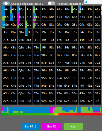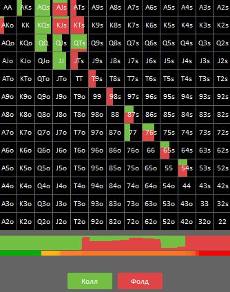 Я не много отредактировал рендж колла IP. У меня нет в защите коллом АВо и КДо. Все 4 бете или фолде в зависимости от "врага" Добавил 50 процентов.