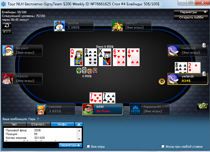 Тут же начался турнир на который выиграл билет))) он интересный 1 место 150евро и iphone 6 18 призовых...