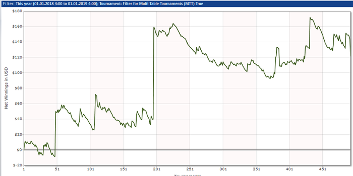 Но месяц назад, зарегистрировавшись в МТТ, потому что была 50% скидка, я неожиданно затащила 18К и подумала, а почему бы мне не попробовать катать турнирчики регулярно, хотя бы по выходным.