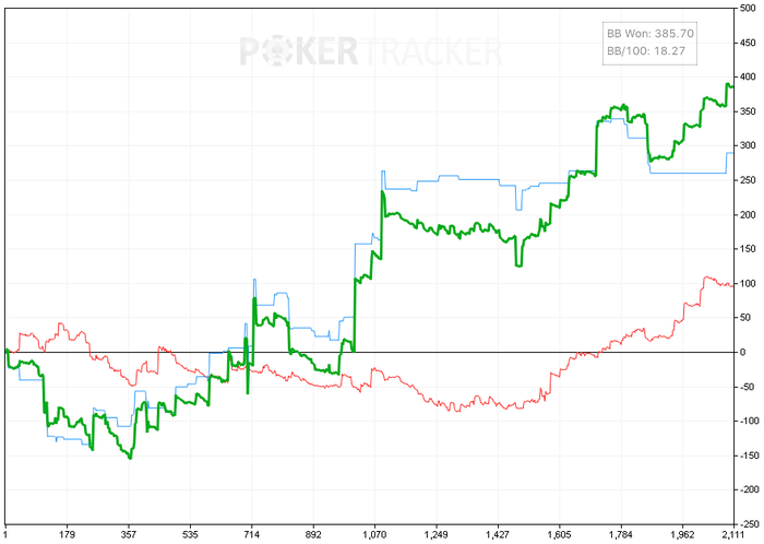 Не прошло и пяти тыщ рук, а я уже говнорег. Против конкретно этого рыба терном даже процентов на 40 эквити чего-то сложно придумать, да я и не пытался особо, вроде как - не хочу думать, хочу "пам-пам-пам" -_- Положу для пристыдиться: