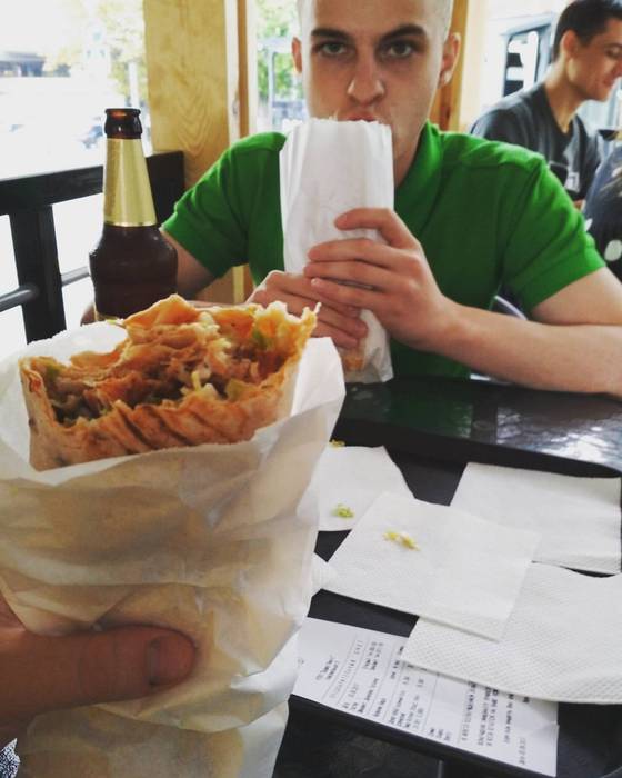 Ещё одну фотографию нашёл в телефоне, дело было так, гуляем с другом по магазинам и тут он говорит : я знаю где тут есть хорошая шавуха, решили зайти и не ошиблись. С другом в кебабе, ахаха его тоже зовут Кирилл!