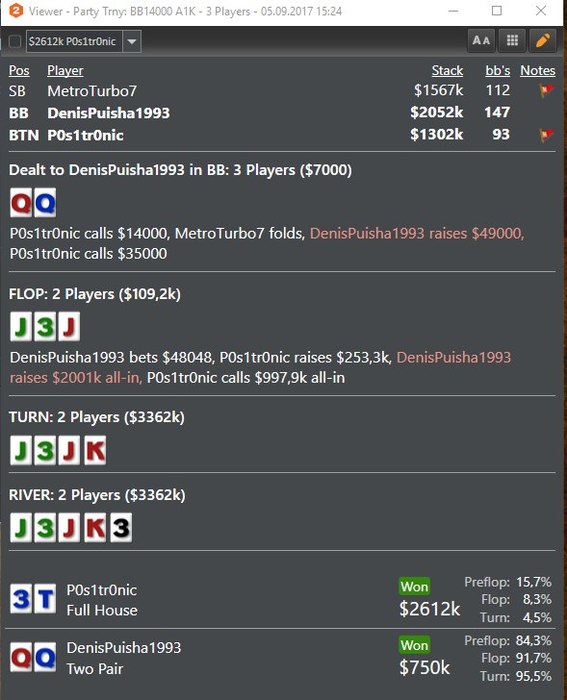 5betpush @ 25.8.2017 road13, Ну просто если покер не твой основной/единственный источник дохода+времени у тебя немного,но есть деньги что бы иногда играть или АБИ2 или АБИ 10,при этом если ты проиграешь эти деньги на твоем уровне жизни это сильно не отразится то я думаю лучше играть подороже на выстрел)