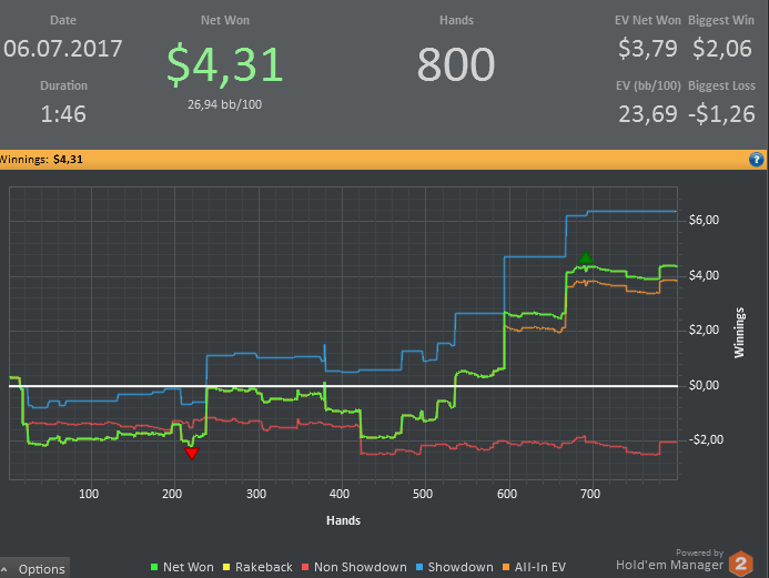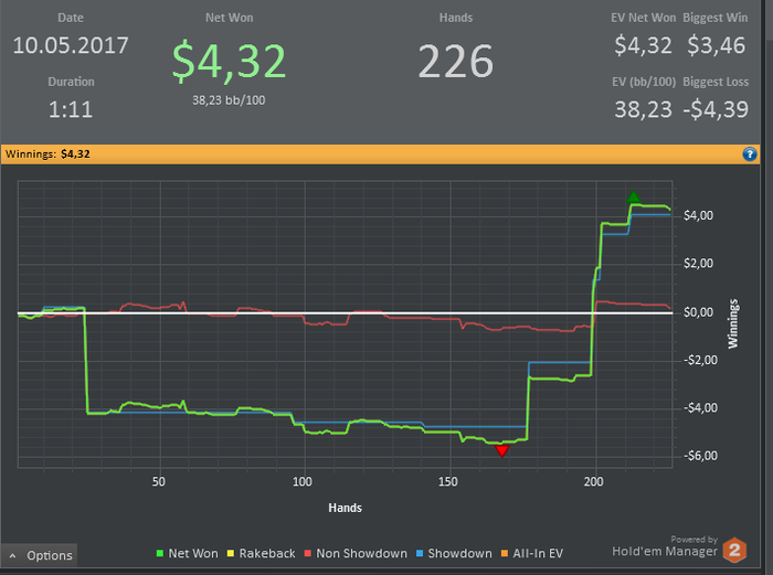 А вот и я, кули. Кароч, нервишек на гсч турниров совсем не осталось, пару раз пробовал саты покатать, ну там даже отобравшись, до итм не досижавал, санкции же. По кэшу с последнего сообщения устроил себе на 10-ках поиграть с 4 то би, на апчик рассчитывая, да вышел хуяпчик, снова 8 бачей в кассе. Зачитавшись блогом дембелей которые с нихуя за месяц касарь наибенили, решил повторить подвиг воена. Депнул 2800 в целковых и нл2 я вся твоя. Для себя: меньше телефонить, больше трибетить, это все, что надо для начала.
