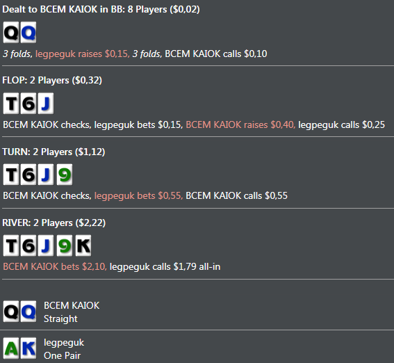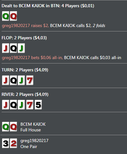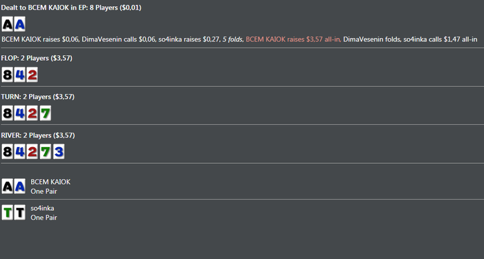 вот с чего психанул вывел деньги, оставалось баксов 8, стал грузить по 3-4 стола, без фанатизма, развлечения ради. шансы банка к куям, только на железобетоне крайняя серия интересной выдалась, решил поделиться вначале неслабо подъебнуло но спасибо блефунам ну и раз так насыпало сорян за много, ну типа перерывчик же был, единожды можно.