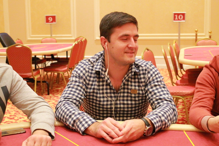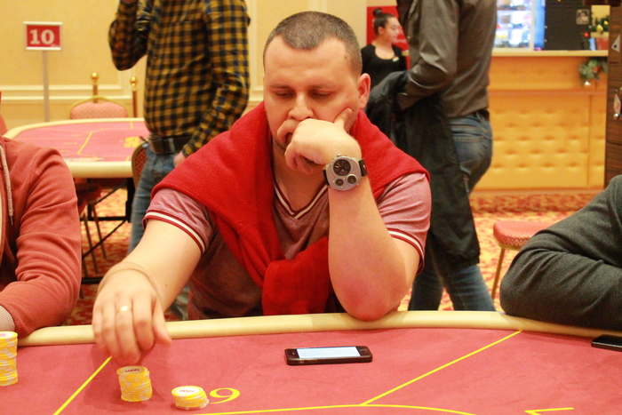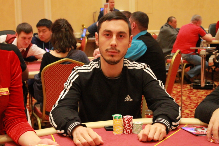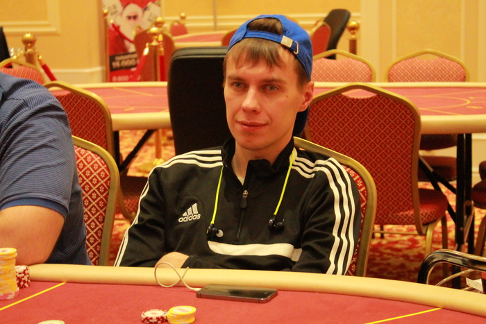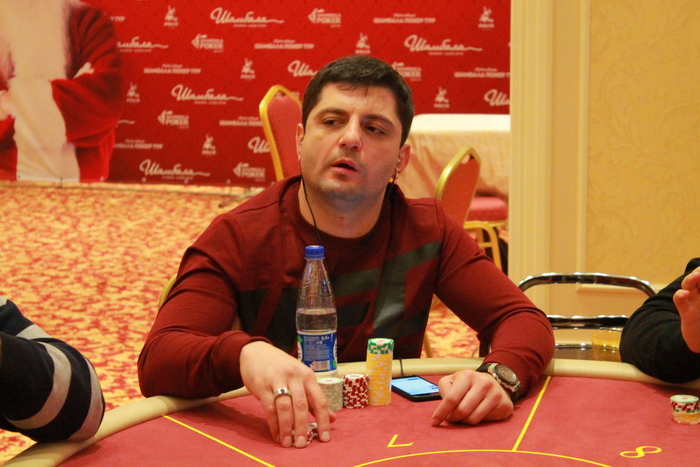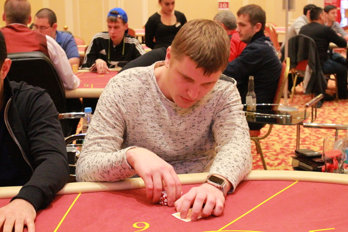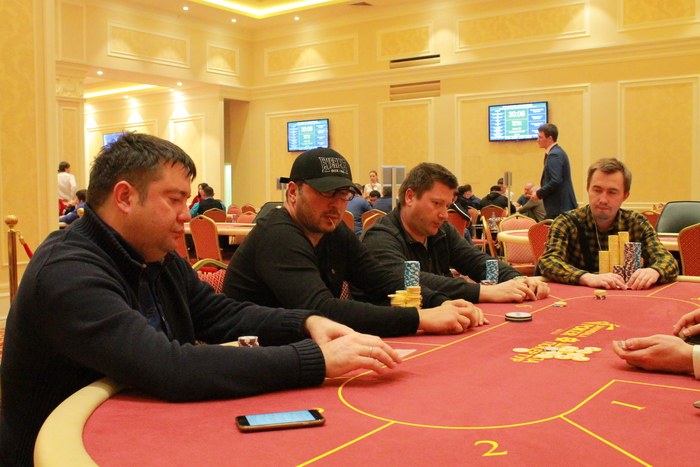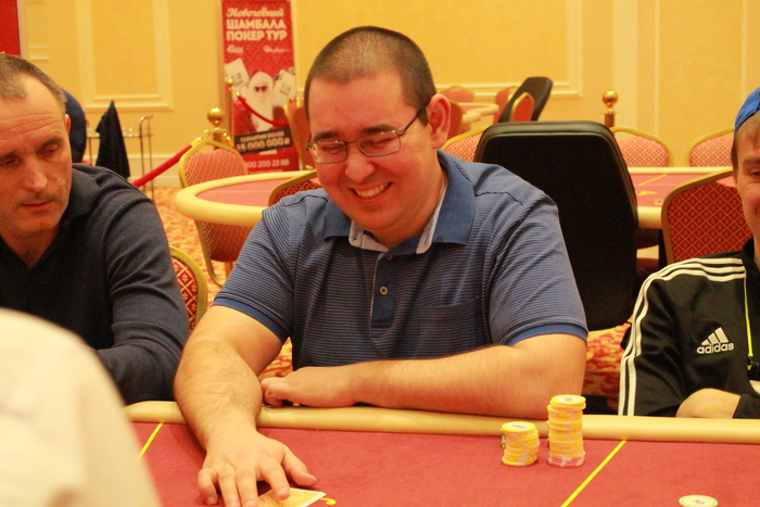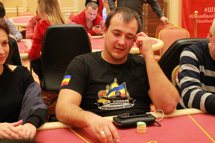Стол №6 Рафаил Саркисов УТГ колл 2К, Михаил Симонов колл 2К, Юрий Коновалов пуш 16К, Артем Шмигирилов идет свой алл-ин 53К, Рафаил пас, Михаил, подумав, заколлировал, Юрий , Артем , Михаил , доска