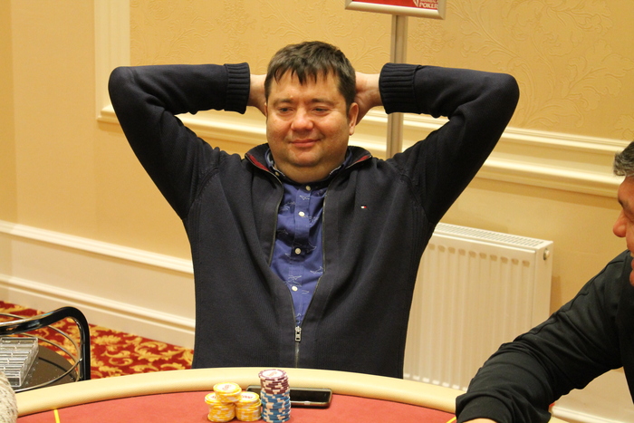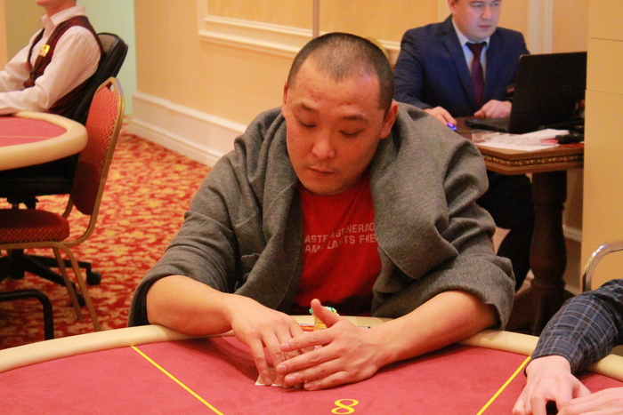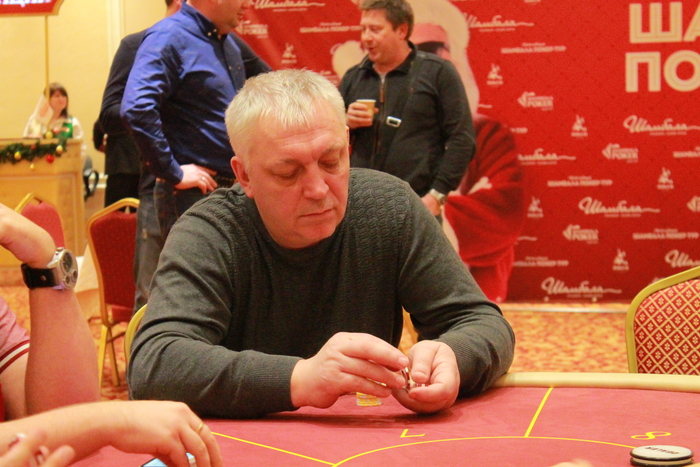 Роман Нураев открывает 45К с баттона, Валерий Затолокин на МБ алл-ин 231К с , а у Николая Лагода на ББ , он ставит свой алл-ин 238К, Роман пас, флоп , терн , ривер падает трефа, но именно