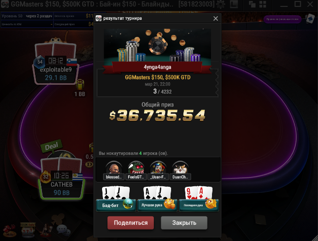 @Мамед (4ynga4anga) выиграл 36.7к в GGmasters за 150$