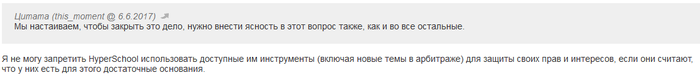 hitruha @ 30.5.2017 Однако в рамках своих полномочий, которыми наделили меня стороны, я обязываю представителей Vpluse принести публичные извинения в этой теме за то, что они безосновательно обвиняли HyperSchool в мошенничестве.