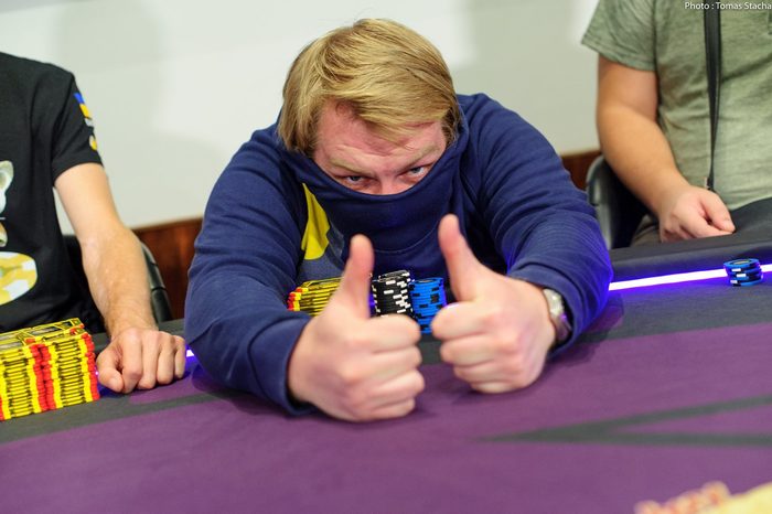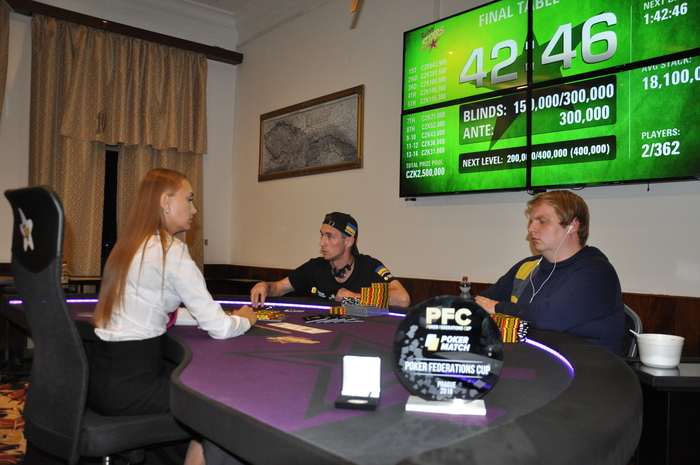 Завершилась поздняя регистрация в турнире Prague Championship Step1A В первый флайт турнира было сделано 65 входов. В строю остаются 14 игроков Сегодня игра продолжится до 7 игроков.