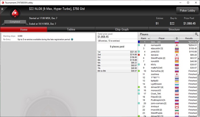 Чет сосу в строчку. Из реального были топ18 билдера по 215 и топ6 16.5 пск дипстек воскресный, ну и вот 109 билдер что сверху. Куча мелкоафсных финалок, но там за первое только ощутимо (и то не всегда даже 1к набирается), а я охуенно справлялся отправляться отдыхать 3м-9м каждый раз. Реально в дипах выгрызать копейки приходится постоянно, я после 82 билдера в июне вообще не помню, чтобы в дипе все как по маслу шло.