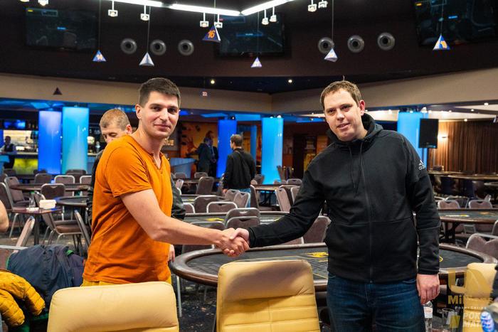 Антон ставит олл-ин 625К с AJ и получает колл от Даниила, у которого нашёлся карман восьмерок. Борд – у Даниила сет. По тёрну Антону не открылось флеш-дро и его турнирная судьба была решена ещё до выхода пятой общей карты.