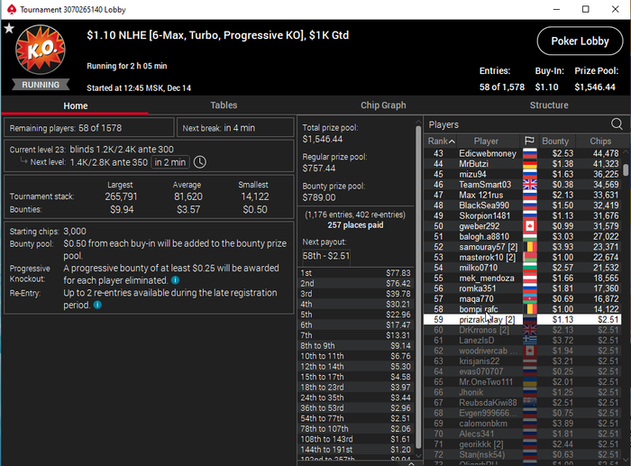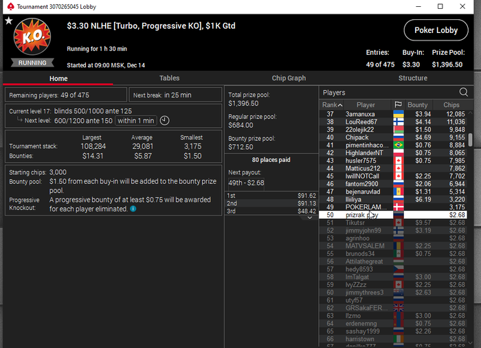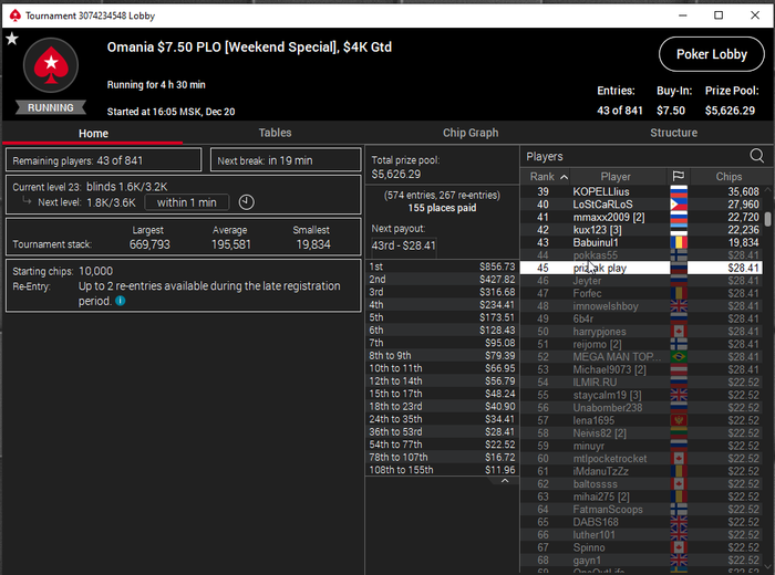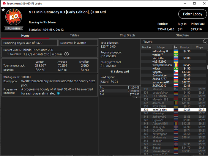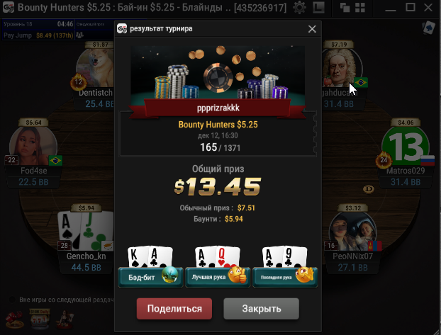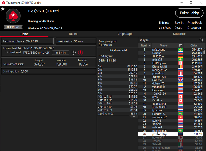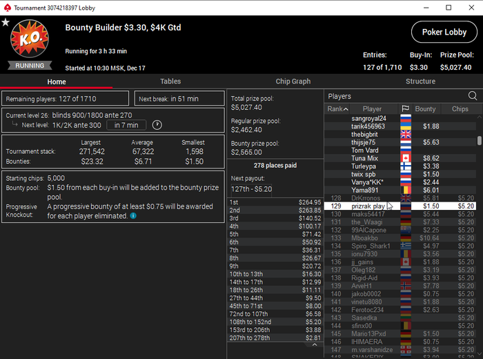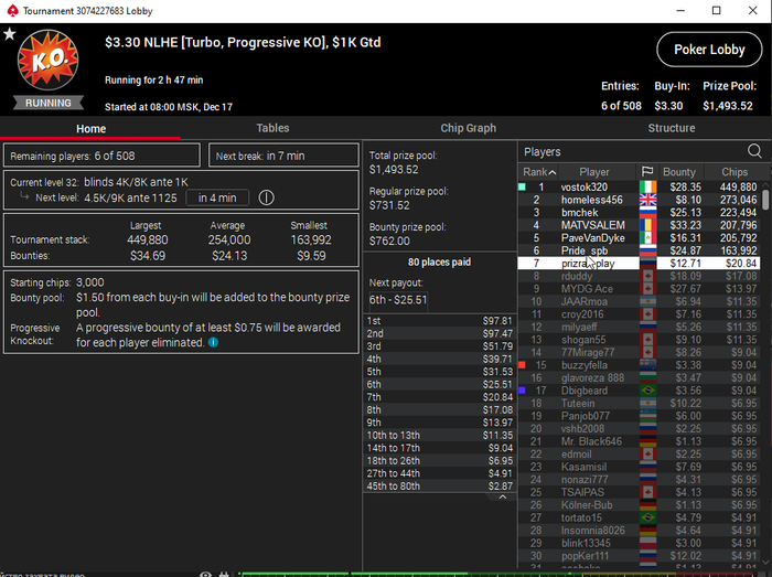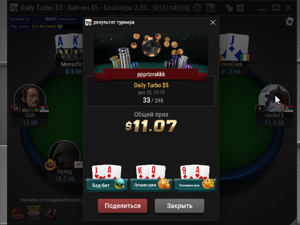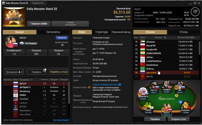 Единственное что меня немного успокаивает и возможно это и есть мастерство игры, что за 13 минусовых сессий у меня получилось не так много проиграть при условии что обычная моя сессия примерно 140-170$ загрузки. Сегодня было 3 очень крутых прохода в дипе за 7.5, билдере за 3.3 и дейли дипе за 5.5, в итоге во всех меня переехали снизу, кроме одного где я на огромных стек проиграл монету с АКs в JJ. Короче сессия -4$. Бр 4919$. Скорее всего возьму день два отдыха от игры и стримов, чтобы морально восстановиться. После дня 110 скину график марафона. Желаю всем заносов и минимального количества переездов!!!