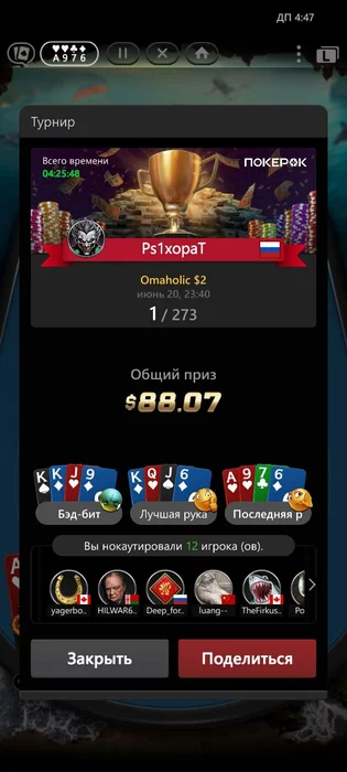 Не получилось запустить марафон, но зато без него неплохо в омаху получается играть. И первые победы на GG:
