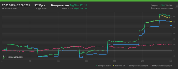 enjoyhertits, сложновато было, но справился, в каждом клубе своя конвертацией фишек и тд. Из каждого клуба по отдельности загружал 400+ и объединил все руки в одну базу, возможно что-то мог потерять и судя по всему у меня лишь с февраля х2н3 об этом уже писал тут, очевидно что я и до этого играл 400+