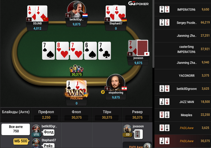 Регаю первый(из 4 возможных) стол и первая же рука JJ. Там была лейтрега 15 мин поэтому нам ничего не оставалось. Да, мы какой день подрят запихиваемся в первую же раздачу. Ну а что поделать, не скидывать же