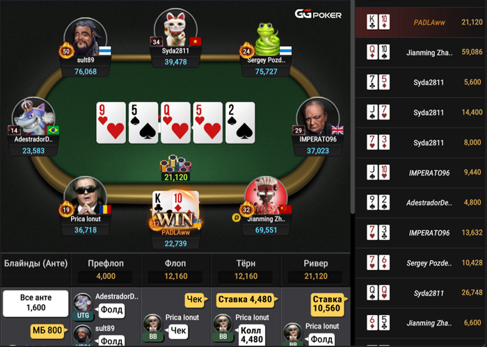 Доигрывал второй стол, пока писал предыдущий пост было на нем пару блаиндосов. В итоге вырулил на финалку, но закончил так: