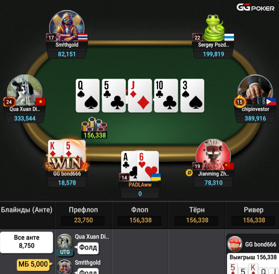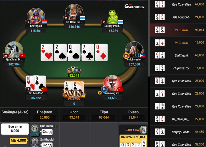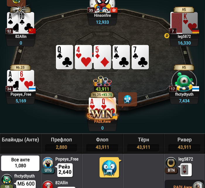 Сказать к слову спустя 10 минут у меня отлетели 2а стола: Мои QQ в АQ и мои АК в JJ(это все прифлоп ибо лет рега и тм маньяки сидели ,поэтому да)