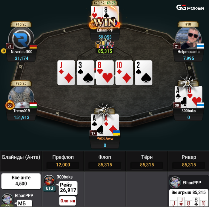 И торой стол у меня +- такой же был. Также ИТМ, также все раздачи монетка или овер старше и также по итогу пошел нахуй