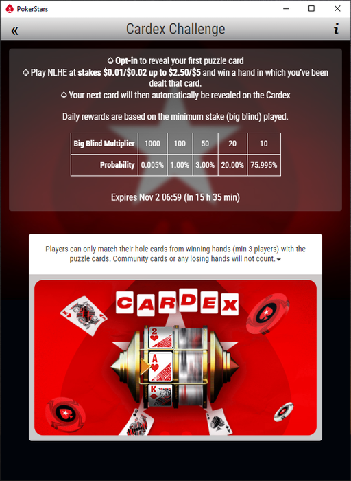 На старзах изи челенж повыпололнял сначала за обчными столами 100-200, понял что не важно где ты карточку получил. Если хоть одну руку сыграл на нл100, то будут считать по нижнему лимиту. Поэтому 2 раза выполнял онли зум200+сх200. Получилось 70$ за 5 выполненных челенжей. Но все равно пока что старзы даже с рб 215 в минусе на сотку.