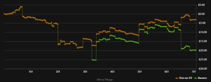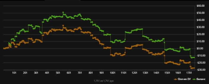 Не знаю что происходит. Психологически просто тяжело играть. Абсолютно все проигрываю, сильно давит это. Думал после перерыва легче будет, нет же, сразу начали доить меня. На следующей неделе уезжаю отдыхать, не знаю буду ли эту неделю играть. НЛ5 может покатаю. Вообще никакого удовольствия не получаю от игры...Хз что случилось...