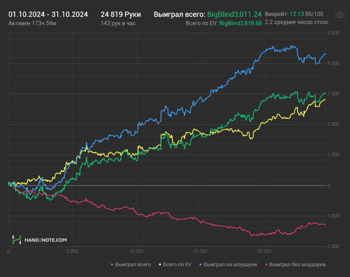 Винрейт 12.1 бб/100 (ev=11.4 бб/100)