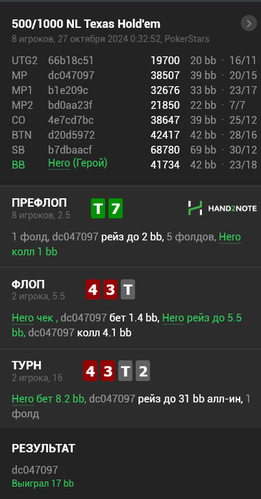 Не, не мой случай. По состоянию на полгода назад, хиро был абсолютно нулевым на постфлопе. Всё по чуйке.
