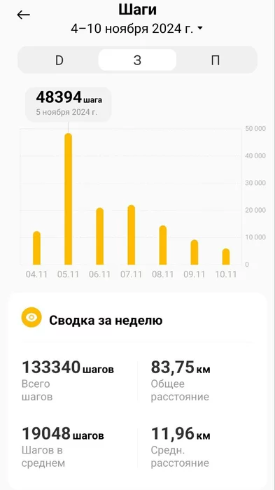 Понедельник - 0 шагов(шагомер во вторник установил)