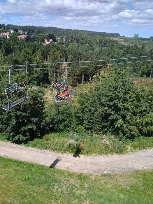 Чтобы как-то себя подбодрить и окончательно не "слиться", выехали семьёй в горы Харц, на горнолыжный курорт Боксберг, куда зимой ездил.