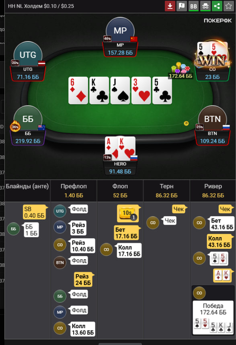 9 часов работы и по итогу вышли в нулевой результат. Покер игра дистанции и результат зависит от двух факторов качества и количества разыгранных рук. Последние 3 сессии были очень тяжелые и минусовые, нужно было собраться и уровнять дисперсию- думаю сегодня цель достигнута. Спасибо кто залетает и смотрит трансляции, отдельное спасибо за активность в чате! Всем хорошего вечера😉