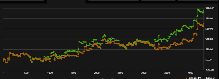 6.5 часов игры и стрима, но мы опять закончили минусовую сессию. Даже с учётом плюса по графику, рейк всё равно сожрал 60$. Очень тяжело играть такие дни, когда сессию за сессией подряд терпишь кулера и выходишь в лучшем случае около нуля. Думаю надо собраться с мыслями и всё таки прыгнуть на лимит ниже...😢 но как это сделать если не хочется? Всем спасибо за просмотр стрима и комментарии, следующая трансляция планируется в четверг. Буду искать удачу и разбирать раздачи 😄