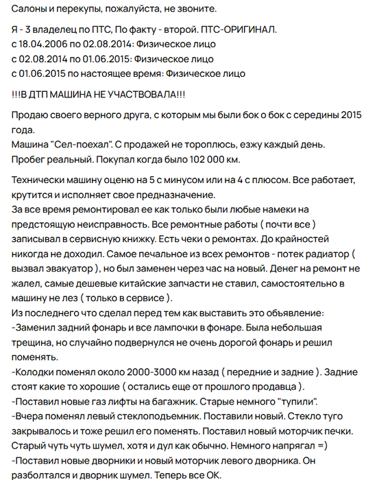 Mercator @ 25.10.25А если в объявлении было что-то типа "посредники мимо" или "в салон не поставлю", всё равно звонил? Или ты сам не видел тексты объяв?