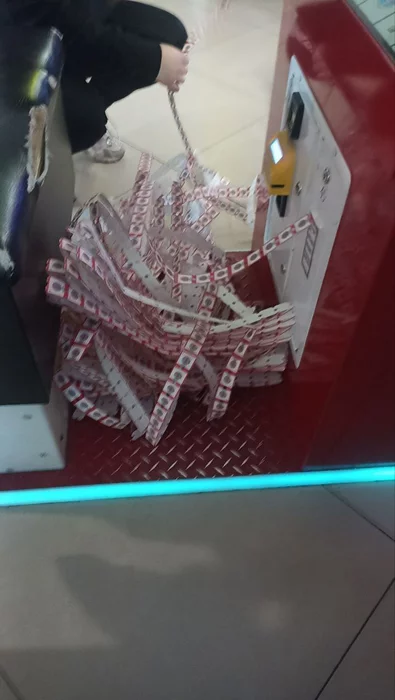 Смотрим на табло и видим 111к очков и почти 2.5к билетов. Начинают выдаваться тиккеты. Копится просто огромная стопка. Ждали минут 15. Потом они закончились и сотрудник пришел загружать новые, чтобы нам продолжило выдавать.