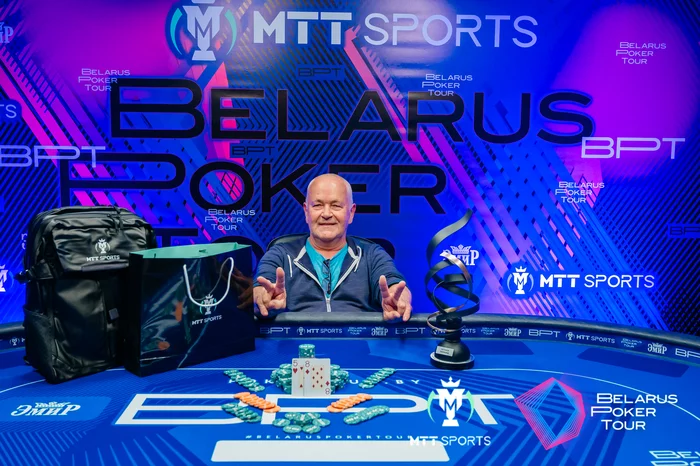 Доиграли турнир ровно за 2 раздачи. Сначала Леонид Нечаев удоился с в .