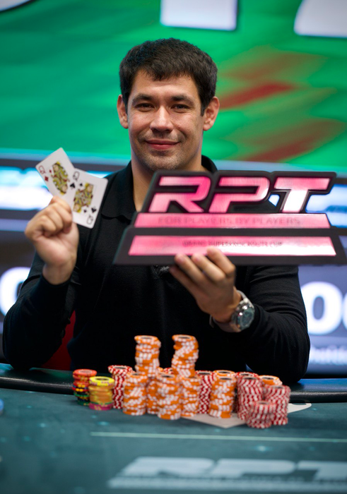 Анатолий продолжал на флопе 8К, и 16К на терне . Здесь Саша вонзил олл-ин, и выдавил расстроенного Анатолия из пота.