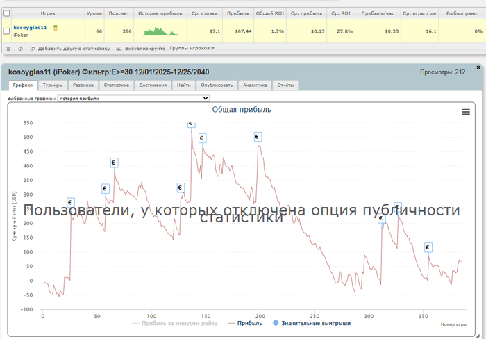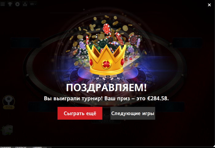 Дистанцию 2000 турниров за месяц выполнена. Так же я не привожу полностью все данные о игре.