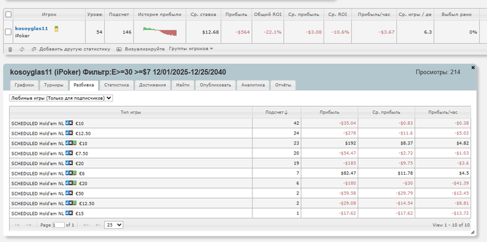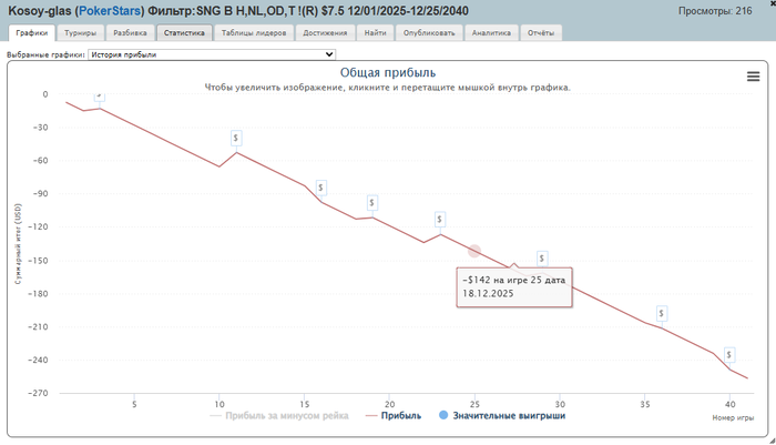 фишей мало, масса микролимитчиков, лимпо-пасьянсеры , слабых и нитовых регов и так далее. А еще важный момент это средняя стадия турнира, где сидит масса крупных стеков по 100бб+ ,которые создают проблемы с реализацией . Короче такие турниры требуют повышенного внимания и стат по этому отправляем в стопку. Возможно оставлю какой-то по 11$ с самой высокой гарантией если будет желание.