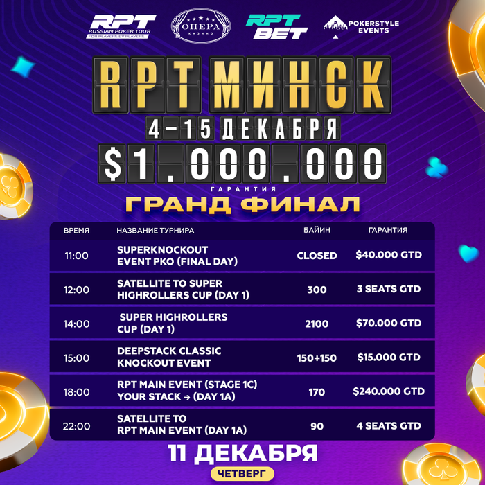 🏆 Финальный день Супернокаута и старт турнира Супер Хайроллеров — распечатываем девятый игровой день Гранд Финала RPT в Минске!