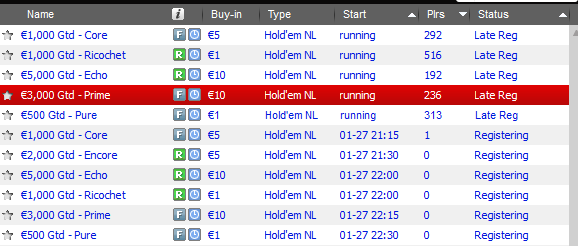 Уже идут 5 турниров в 5 покер-румах. Турниры на PokerStars появятся к началу февраля.
