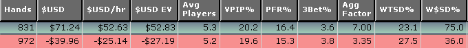 хотя очень долго удавалось красную держать в плюсе, что очень порадовало: Как говорил мой старик отец, "если не можешь на ривере побить даже третью пару, то ставь 2/5 пота" буду дальше практиковать это дело