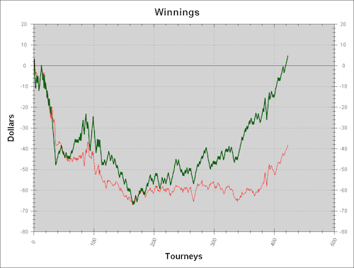 Виной всему были чисто психологические проблемы. В то время когда несколько переездов отниманили по 4-5 байнов в течении рабочего дня, нервишки начинали пошатоваться. Особенно, когда делал вылазки на нл25. Ведь 4-5БИ в минус, на этом лимите, это 10БИ предыдущего и ни много, ни мало 100$. В итоге к покеру я возвращался урывками, в то время, как некоторые, не будем показывать пальцем , работали над своей игрой и собственно занимались этой игрой на все 100%! И к концу года добились определенных результатов.